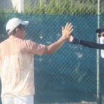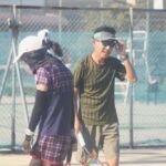 猛暑の中…コートを駆け回っています♪