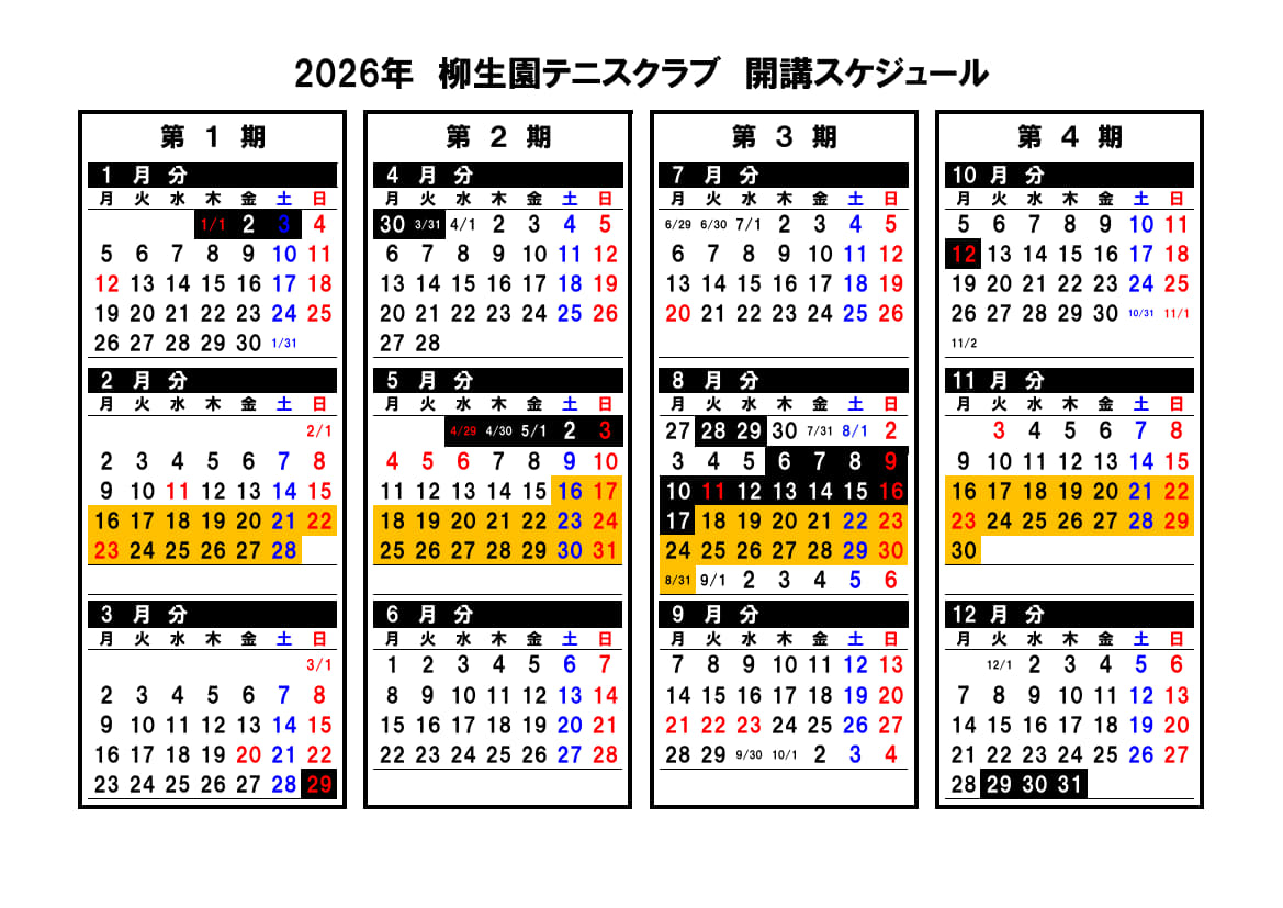 - ・2026年 第1期 は、1月4日(日)~3月29日(日)です。